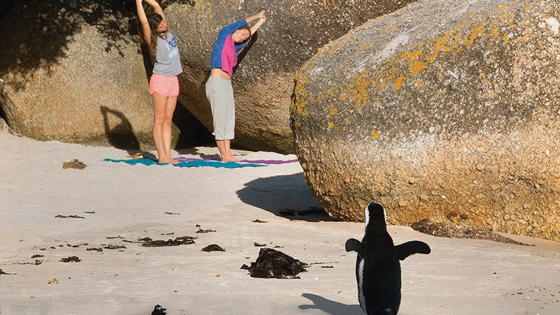 アメリカ・フロリダのボイントン・ビーチに住む、レイチェルとヘレン。二人が南アフリカのケープタウンでペンギンを見に来たときに、かわいい一匹のペンギンが私たちのポーズをマネし始めたときの一枚。