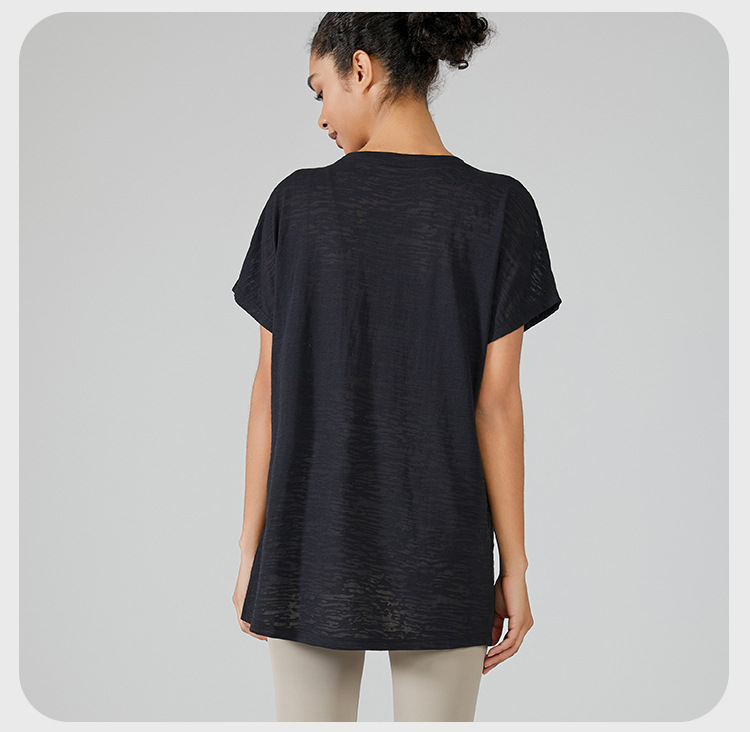 ヨガtシャツ ヨガトップス ラウンドネック 半袖 全4色 長め 太もも隠れる 二の腕カバー 羽織り 快適 ルーズ 細見え 通気性 速乾 お腹カバー ひんやり 軽さ 薄手 サイドスリット 透け感 合わせやすい スポーツ フィットネス ランニング S-XL